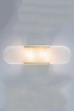 This modern alabaster wall sconce casts a gentle, soothing light with its sleek design, bringing a fresh and elegant ambiance to any space.
