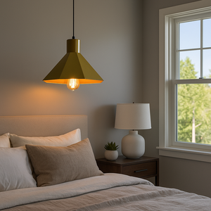 A sleek Nordic pendant featuring a faceted metal shade that adds modern structure and clean geometry to any space. Its minimalist form delivers focused illumination with contemporary elegance.
