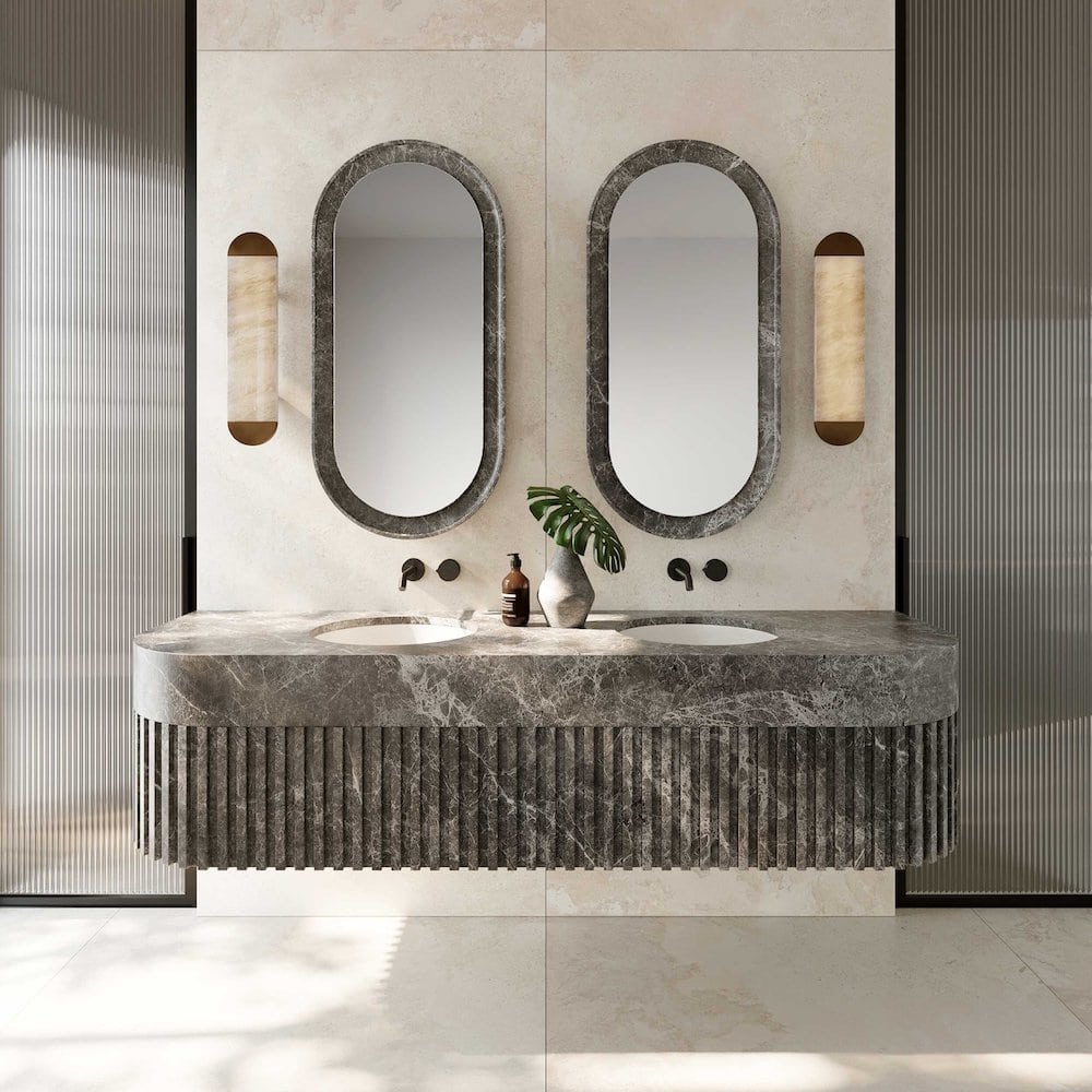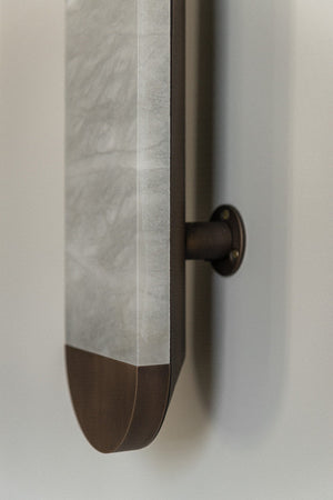 - Materials: Solid cast-bronze back-plate + natural alabaster front; unpolished bronze finish (other finishes on request).
